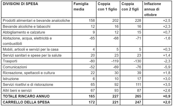 Per l’Unc l’aumento è di 265 euro per coppie con 2 figli