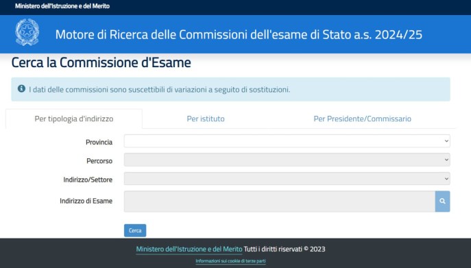 Il Mim ha attivato il motore di ricerca nella giornata del 4 giugno 2025. Il servizio è disponibile al sito matesami.pubblica.istruzione.it/VisualizzaCommissioniEsami/indirizzi/ricerca.