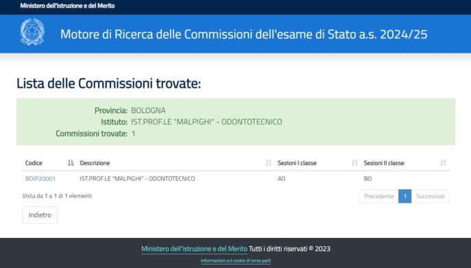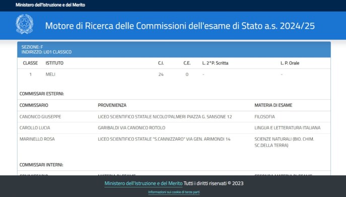 Cliccando il codice, si finisce finalmente su una pagina contenente l’elenco dei commissari esterni e dei commissari interni.