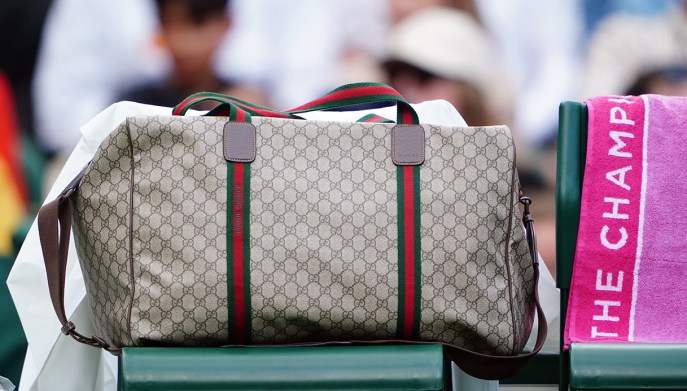 Sinner è sceso in campo più volte portando in spalla un borsone con l’iconico pattern GG della maison di lusso. Ma non si tratta di un modello qualunque: il pezzo esclusivo, creato appositamente per lui, viene prodotto con il famoso tessuto impermeabile, impreziosito dal nastro Web nei colori distintivi di Gucci verde-rosso-verde.